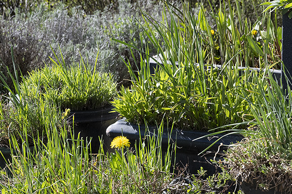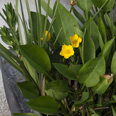 Die Wasserpflanzen sind in wasserdichten Töpfen.