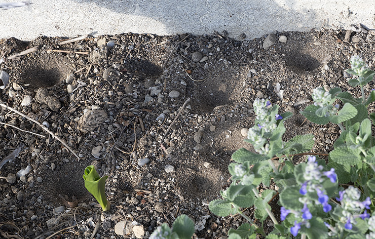 Ameisenlöwen an einer sonnigen und trockenen Hauswand