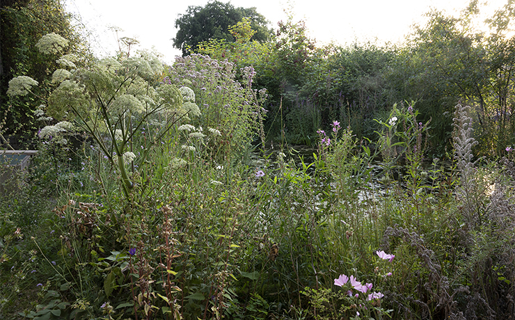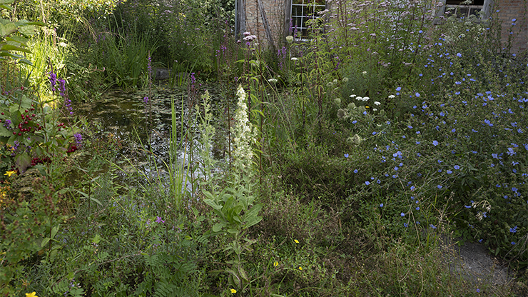 Üppige Ufervegetation am Gartenteich (25.06.2025)