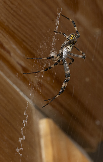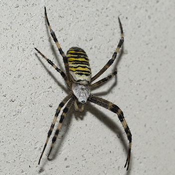 Wespenspinnen sind sehr auffällig gelb, schwarz und weiss gefärbt. Die Weibchen sind 14 - 17 mm gross, die Männchen 4 - 6 mm.