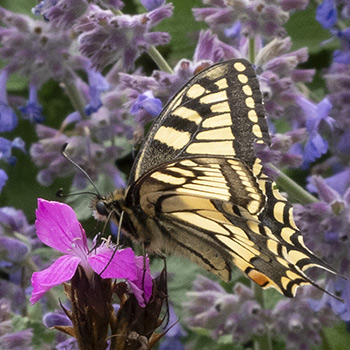 Auffallend viele Schmetterlinge flogen überall zwischen den Blüten. Die Nachtfalter kamen nachts bei hell erleuchteten Fenstern auch ins Haus.