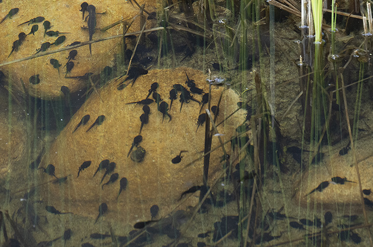 Plötzlich zieht Leben ein, in unserem Teich. Die Kröten sind wieder hier und wickeln ihre Laichschnüre rund um die Pflanzenstängel.