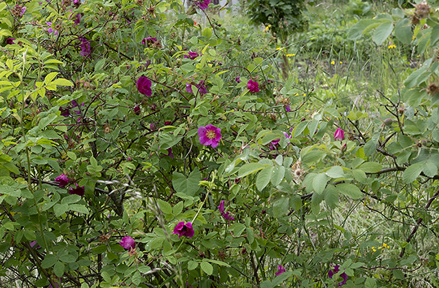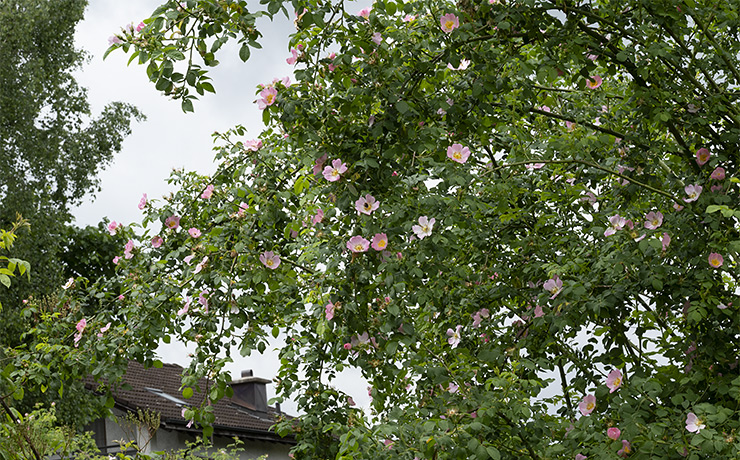 Der Strasse entlang wachsen bei uns zahlreiche verschiedene Wildrosen.