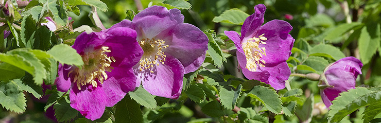 Der Strasse entlang wachsen bei uns zahlreiche verschiedene Wildrosen.